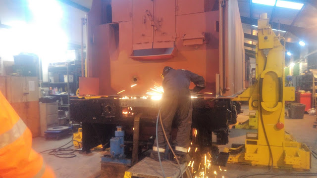 Today was a big day when the new tender tank was reunited with the chassis. Here it is being lifted clear of the wagon that it has been residing on for some time.